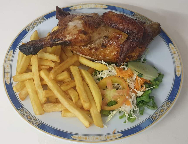Heerlijke verse gebraden kip, dagelijks aan het spit gebraden.